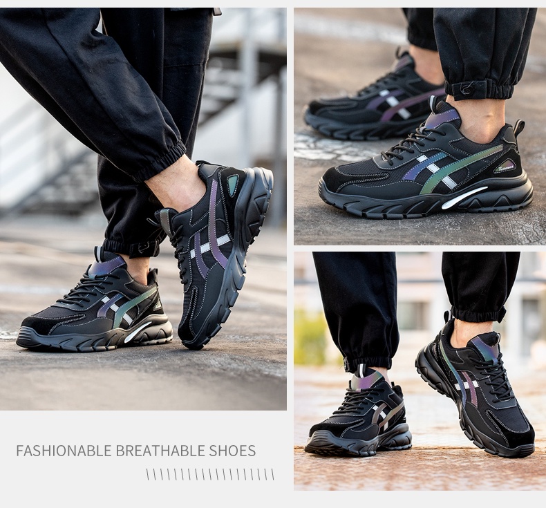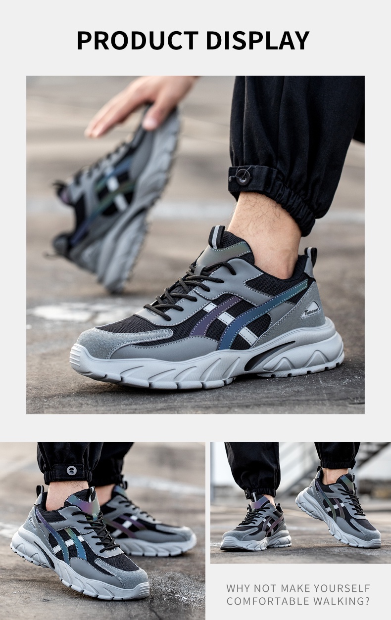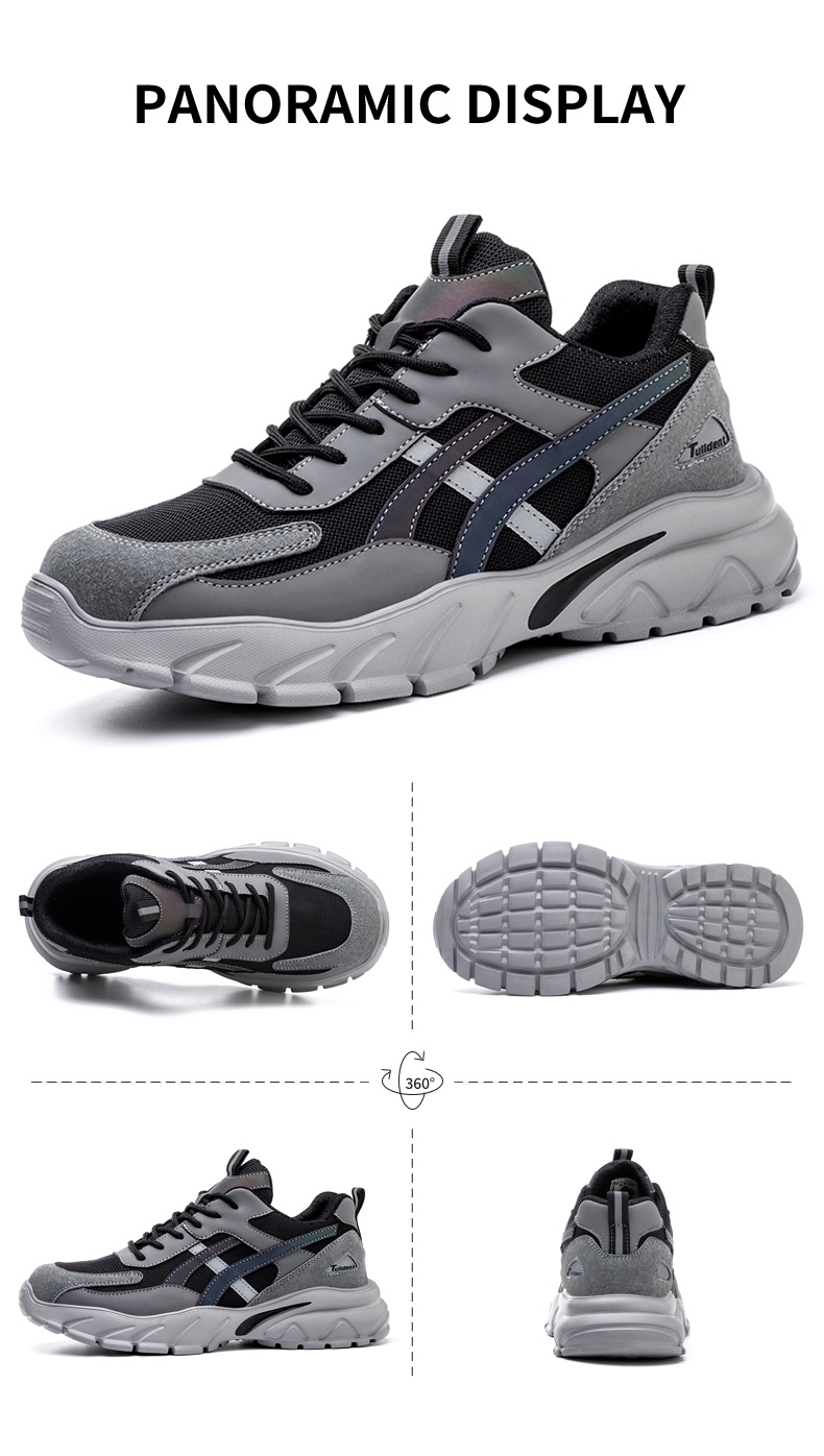 Tulldent Safety Shoes Men Plastic Toe Cap Anti-smashing Anti-piercing light weight Reflective in Grey
