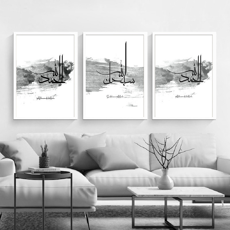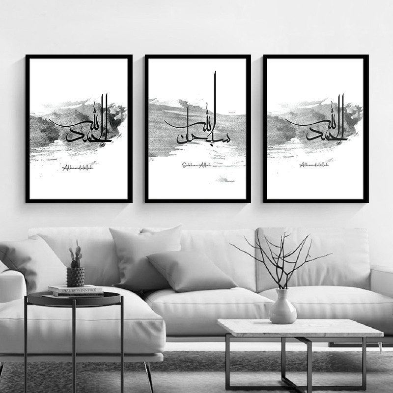 A4/A3 Frame 3PCS Islamic Poster Ramadan Decoration Arabic Calligraphy Canvas Painting Home Decor
