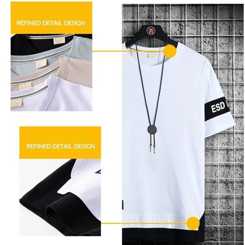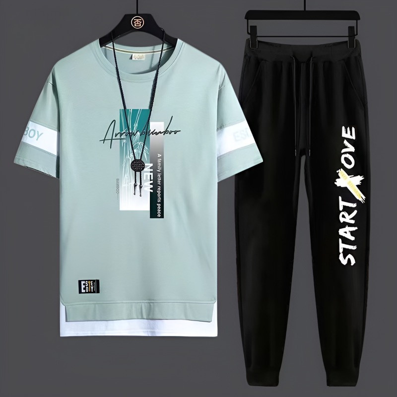 Men's set casual sports Korean version loose fitting youth student short sleeved T-shirt trend two-piece set baju lelaki
