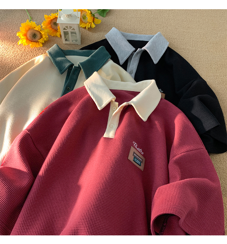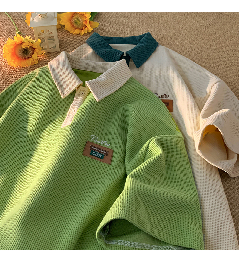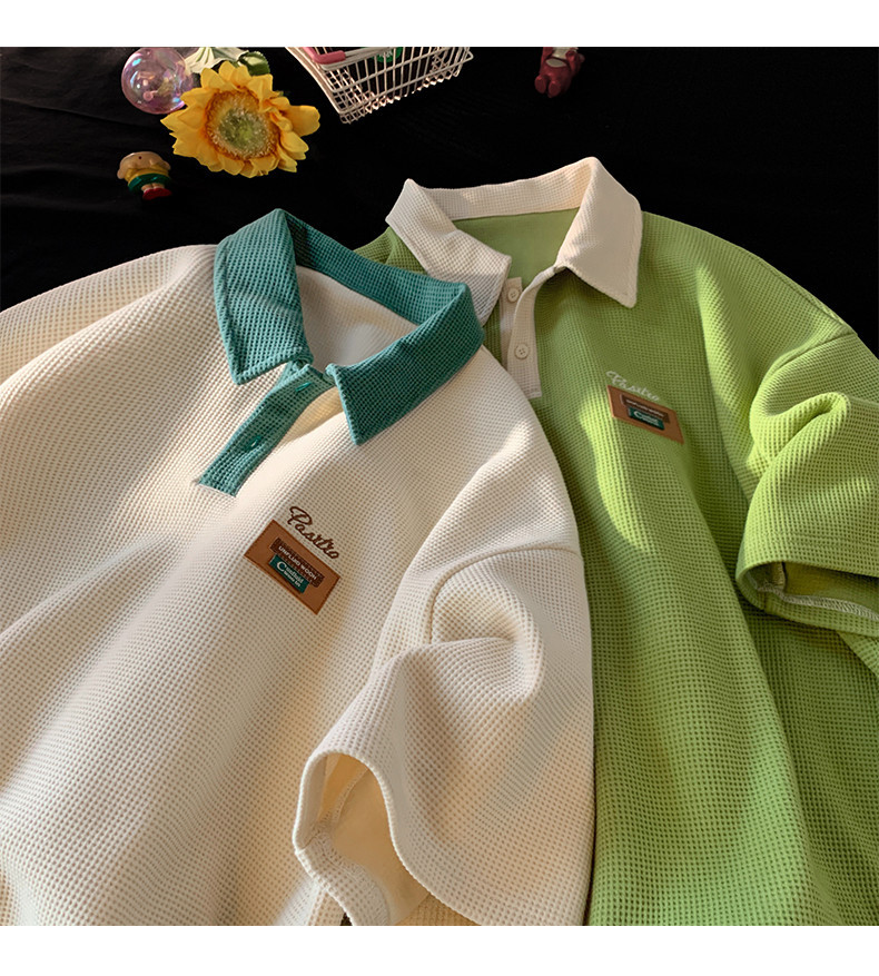 BeCoolMAN black men waffle shirt baju polo lelaki t shirt berkolar Colorblock Short Sleeve unisex graphic
