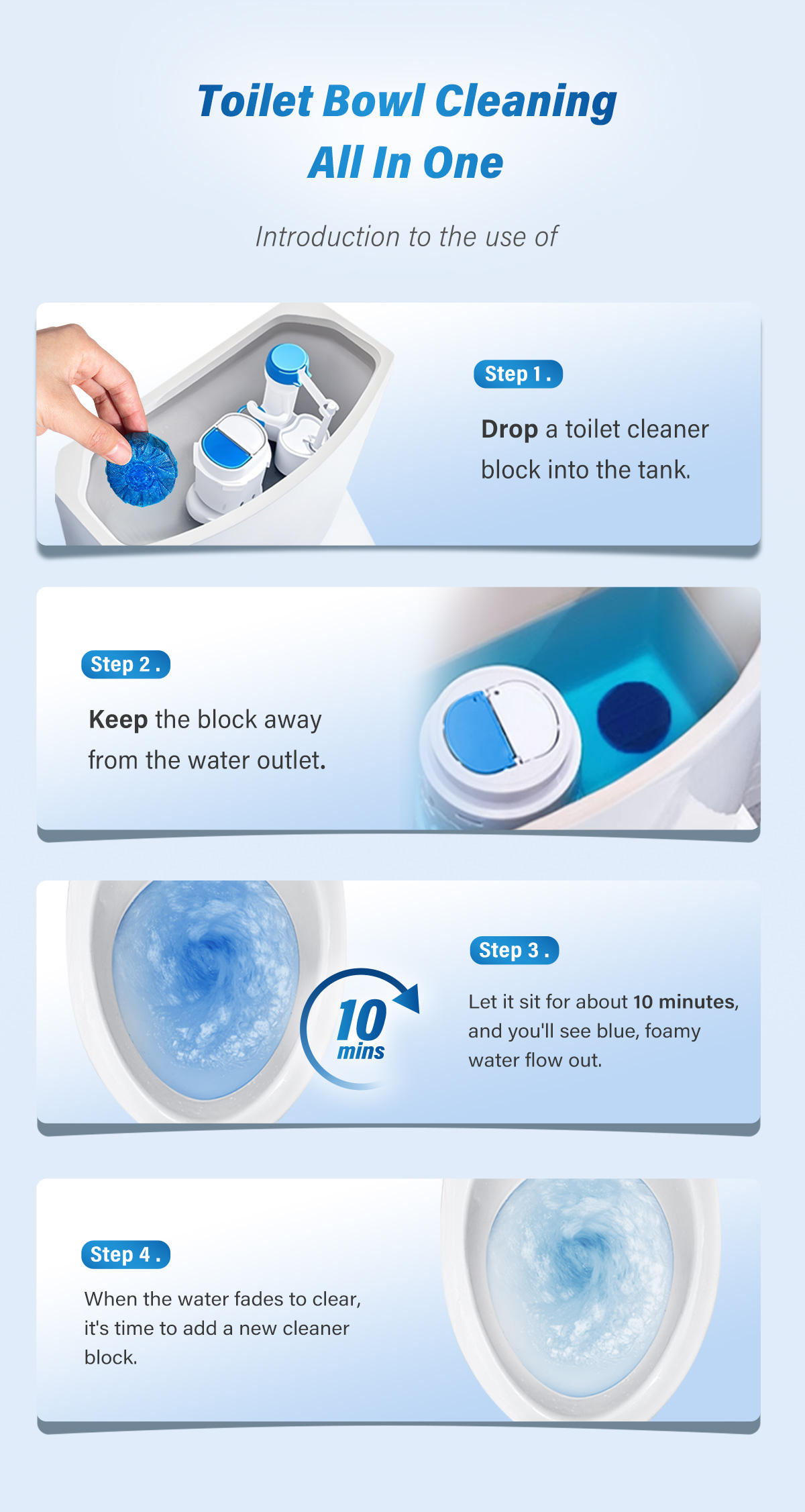 Each block is formulated with antibacterial & deodorizing agents, ensuring your toilet remains hygienic, odor-free, and fresh.