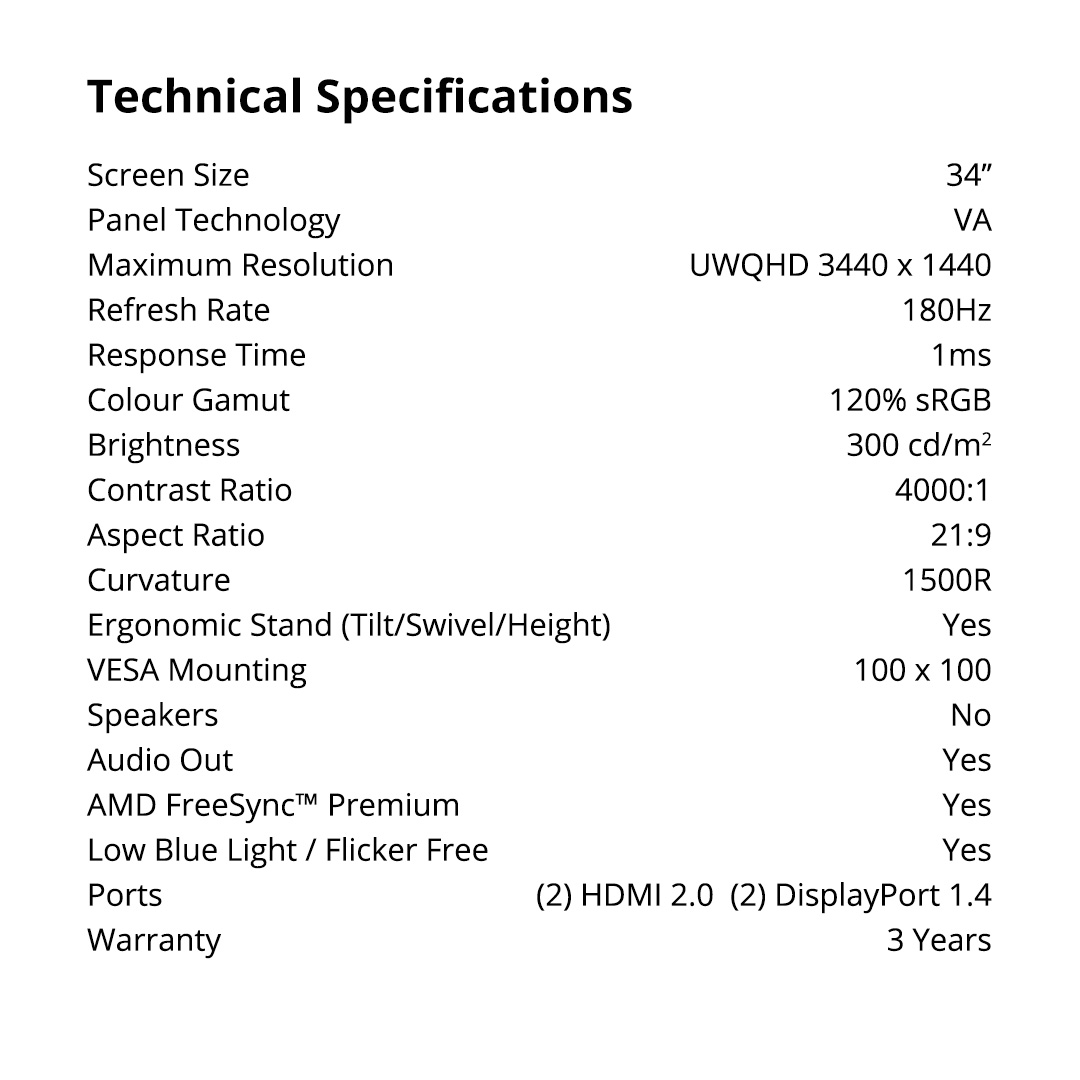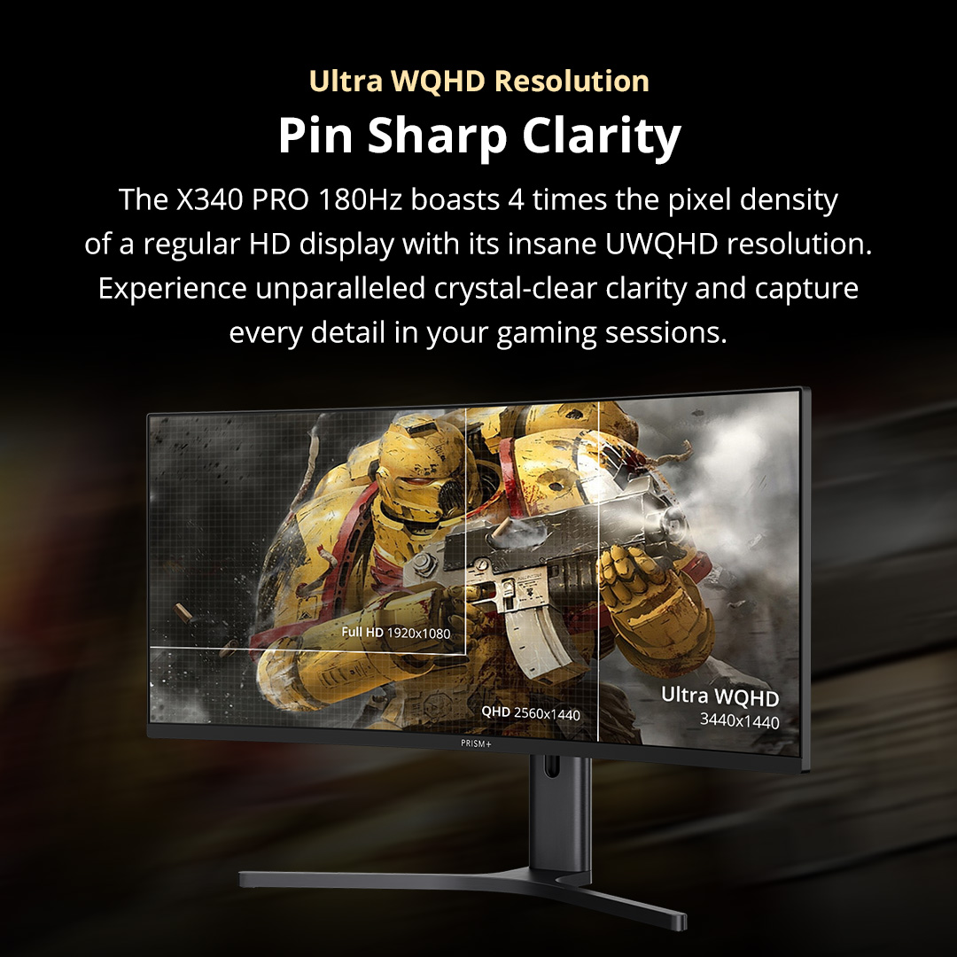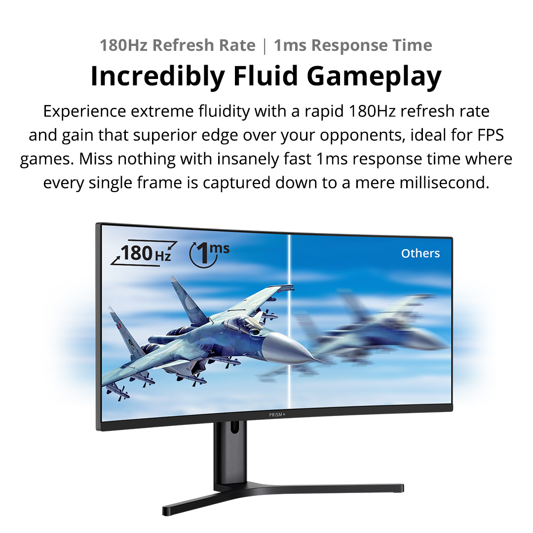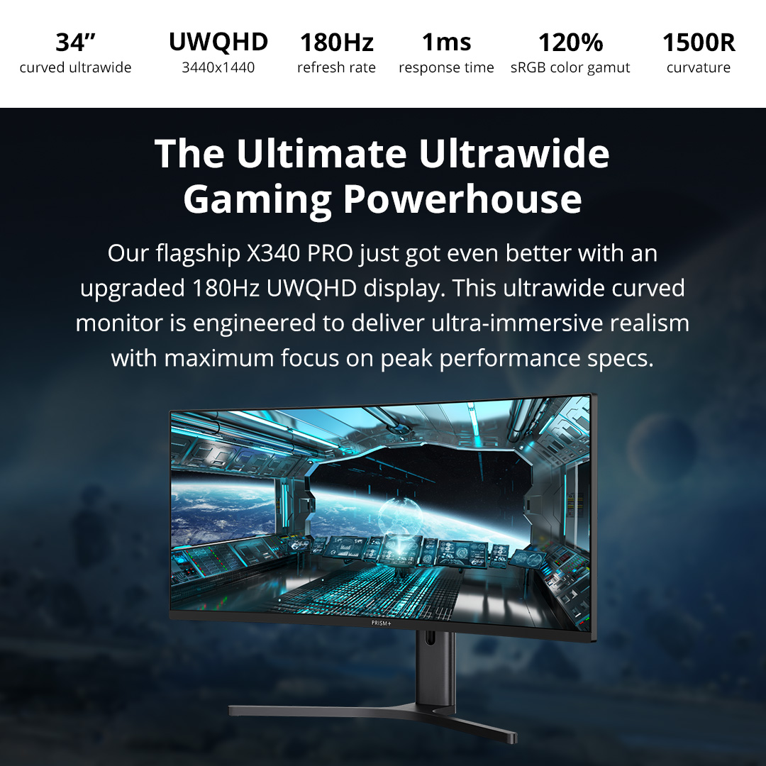 PRISM+ X340 PRO 34" 180Hz 1ms Curved Ultrawide WQHD[3440 x 1440] AdaptiveSync Gaming Monitor